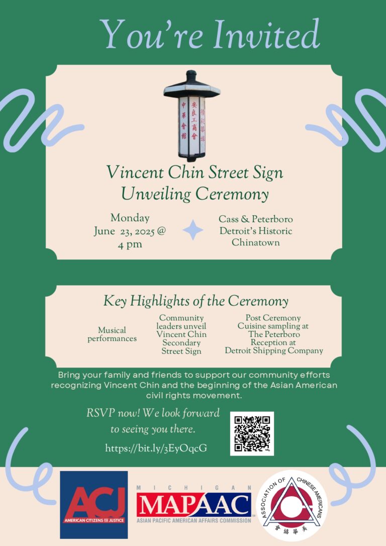 Any donations are welcome. Link to donate as an individual via PayPal or Credit Card to Block Party. Please include in the Note area that donation is for “Chinatown Block Party”: https://www.americancitizensforjustice.org/donation/ OR Donate via check payable to “American Citizens for Justice”. Include a note for “Chinatown Block Party”. Checks can be mailed to: American Citizens for Justice, P.O. Box 851163, Westland, MI 48185.